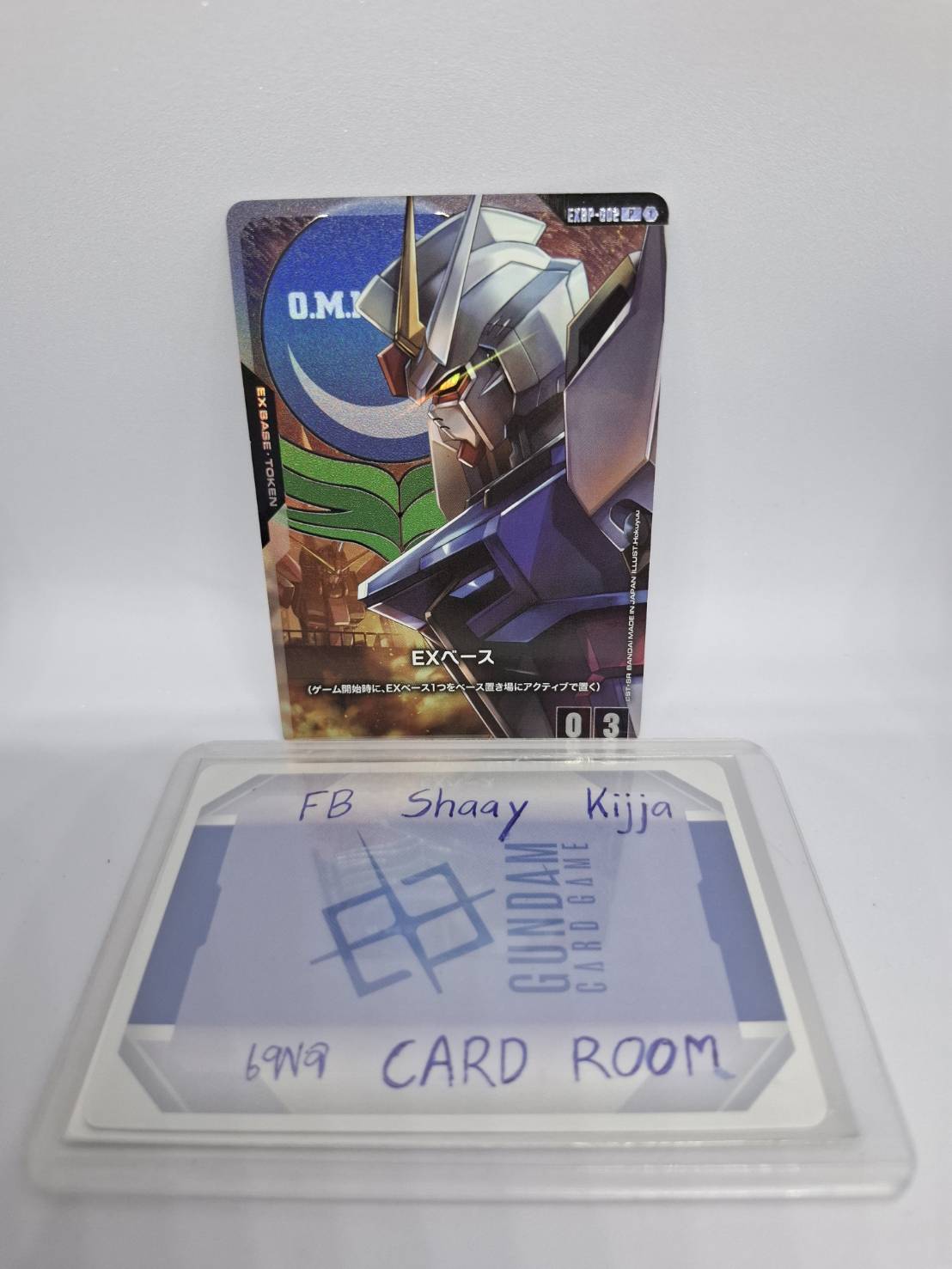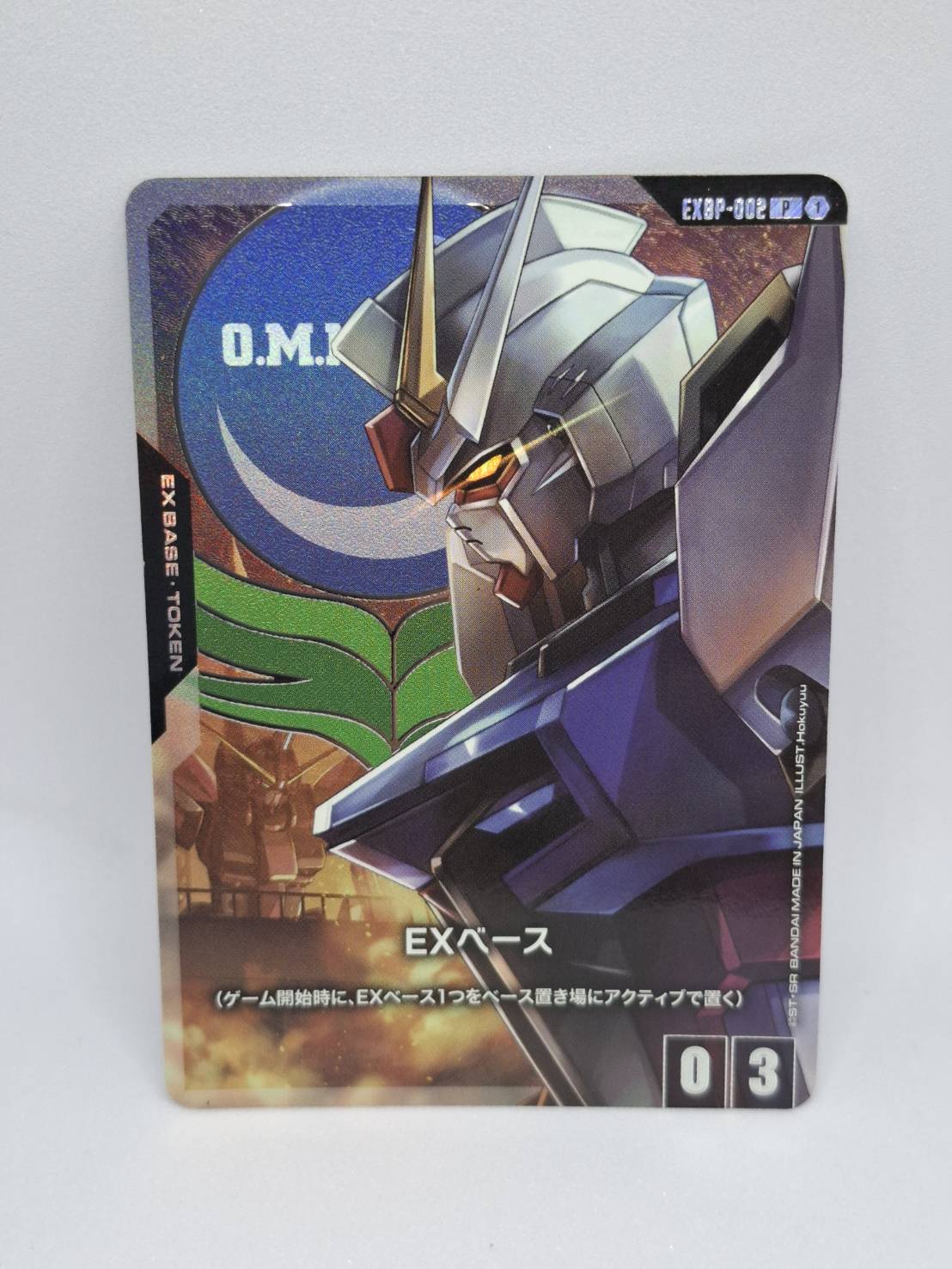 EXBP-002 (P) เป็น Base Token ของ GUNDAM CARD GAME ที่มีภาพเป็น Strike Gundam ใช้ในการกำหนดฐานของผู้เล่นเมื่อเริ่มเกม และเป็นการ์ดโปรโมชั่นที่หายากและเป็นที่ต้องการของนักสะสม
